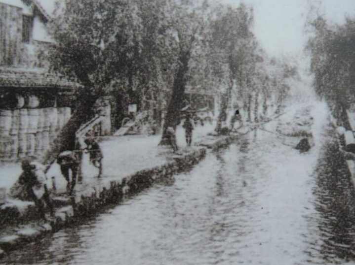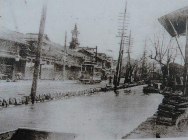 高瀬川の古写真・路面電車が見える