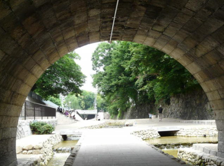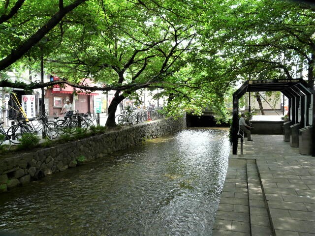 今出川通りから二条城前の押小路通まで地表を流れる。(上流、下流は暗渠となっている)
