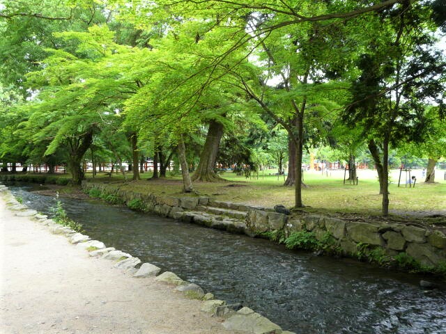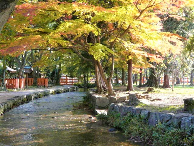 ならの小川は御手洗川(みたらしがわ)とも呼ばれる水量豊富な小川で、緑と紅葉が美しい。