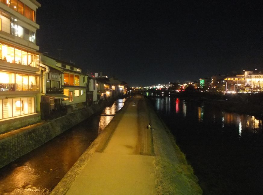 夜の鴨川 夕暮れ時の鴨川
