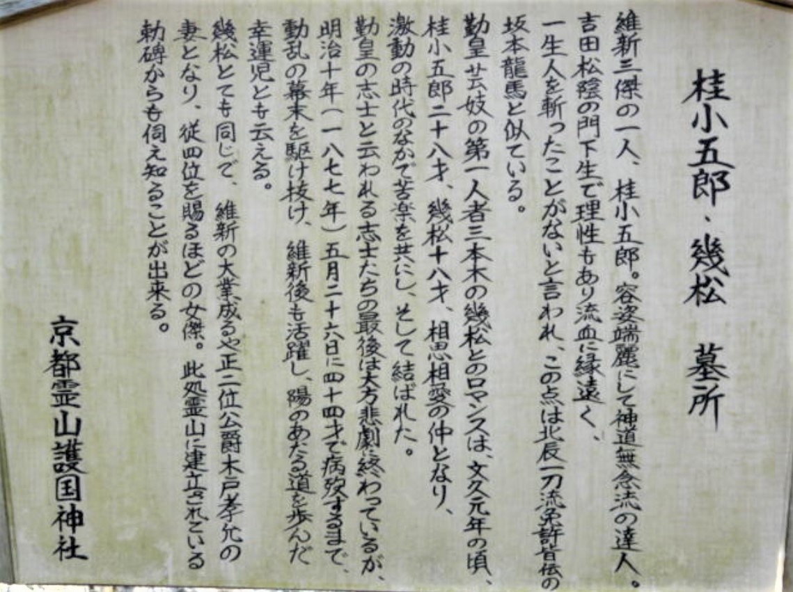幾松後の木戸松子 霊山護国神社に眠る小五郎・幾松の碑