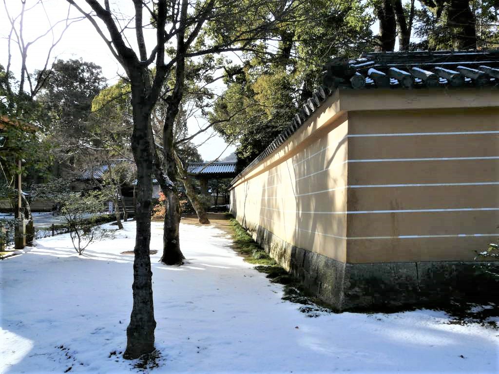 京都の寺院の壁によく見られる白い横線 、天皇家ゆかりの寺院の証で線の本数により格式の高さが違います。