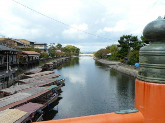 中の島・朝露橋橘橋より屋形船を望む