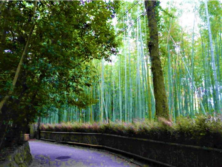 ひんやりとした竹林の小径を歩く。奥の小倉山麓には、祇王寺・常寂光寺・二尊院などあり静かな散策が楽しめます。