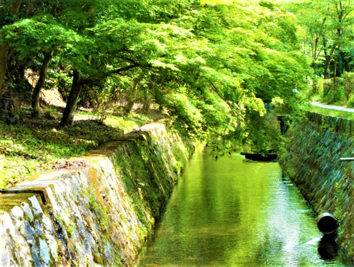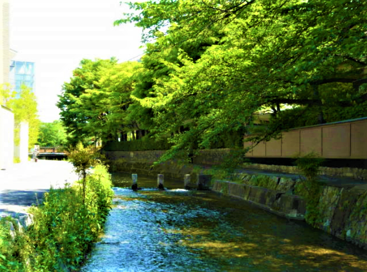左京区散策 このエリアは広いため、自転車での散策がおすすめです。白川岡崎近く 哲学の道 白川三条から祇園四条まで川沿いをのんびり歩くと、周りの古都の雰囲気が満喫できます。川と柳でひんやりしています。地下鉄「東山」から京阪「四条」までがおすすめ散策コースです。白川・祇園白川・三条白川・四条